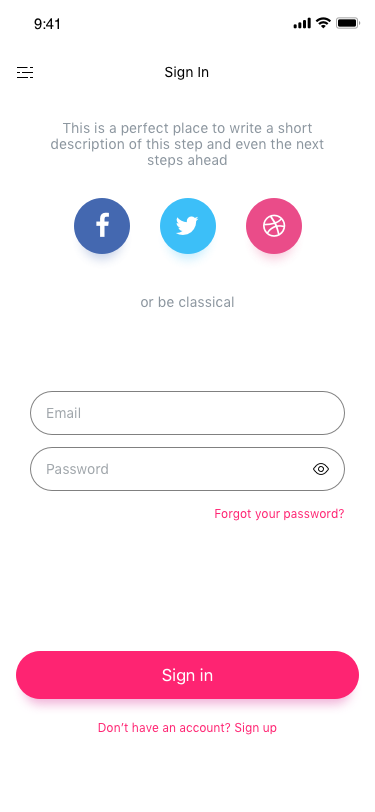 Galio Framework comes with tons of ready-to-use features & components. The samples contains several pages that you can use "as is" or add new blocks from the UI Kit.